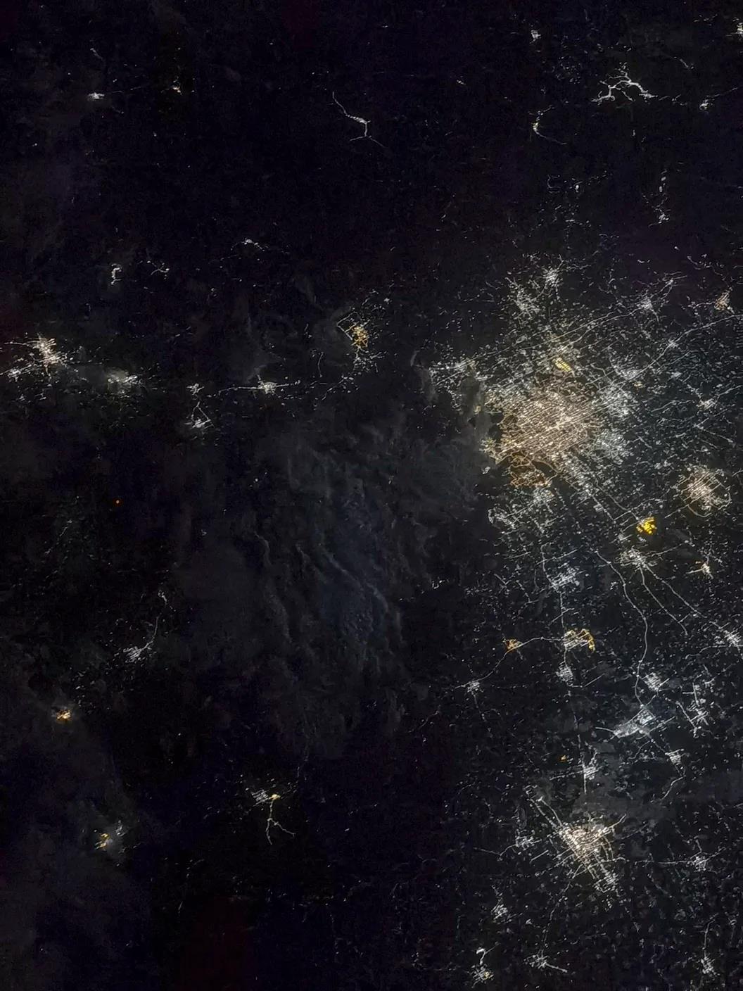 2021年7月30日,航天员汤洪波拍摄到了北非大陆上万家灯火的盛景,宇宙中的繁星与地球上的灯光交相辉映,共同演奏出了一首和谐的生活乐章。