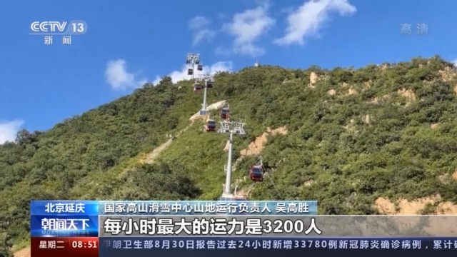 国家高山滑雪中心山地运行负责人 吴高胜:这是我们的A索,主索道缆车每小时最大的运力是3200人,除了主线路上其他还有专业的滑雪吊椅索道。我们赛区主要有吊椅和吊厢两种形式来组成。