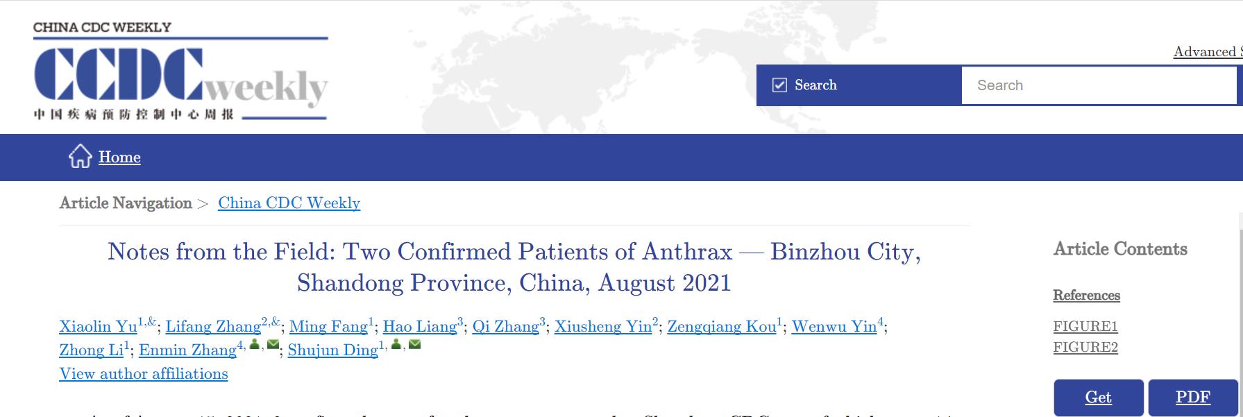 央视网消息:据健康时报援引《中国疾病预防控制中心周报(英文)》8月27日发布来自现场的报告称,截至8月15日,山东省疾控中心报告滨州2例炭疽确诊病例,一例是一名14岁的学生(患者A),另一例是一名从事屠宰工作的35岁男子(患者B)。患者A于8月6日死亡,患者B已被转移至传染病医院进行隔离治疗。