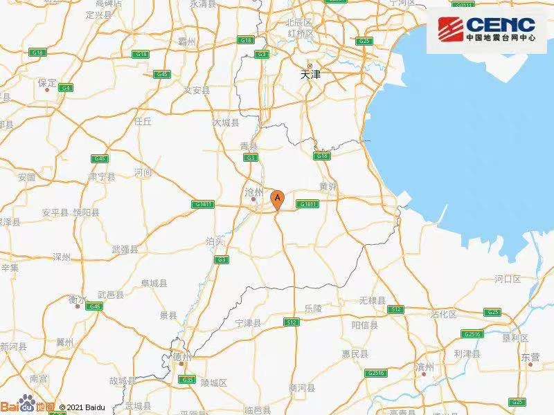河北沧州市沧县发生3.2级左右地震