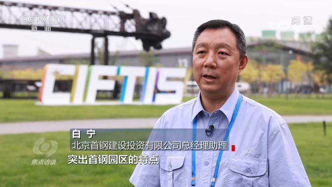 北京首钢建设投资有限公司总经理助理白宁说:“这也是服贸会一次重大的创新,突出首钢园区的特点,以工业遗址景观轴作为核心,展馆环绕布置,展馆搭建的时候注意与工业遗存和景观的对话,打造具有强烈公园属性和游历感的会展。”