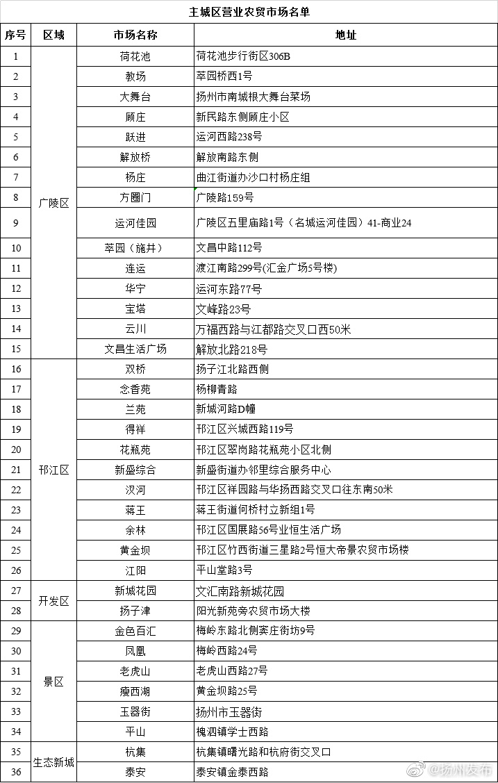 至9月1日扬州主城区累计恢复营业农贸市场将达36家