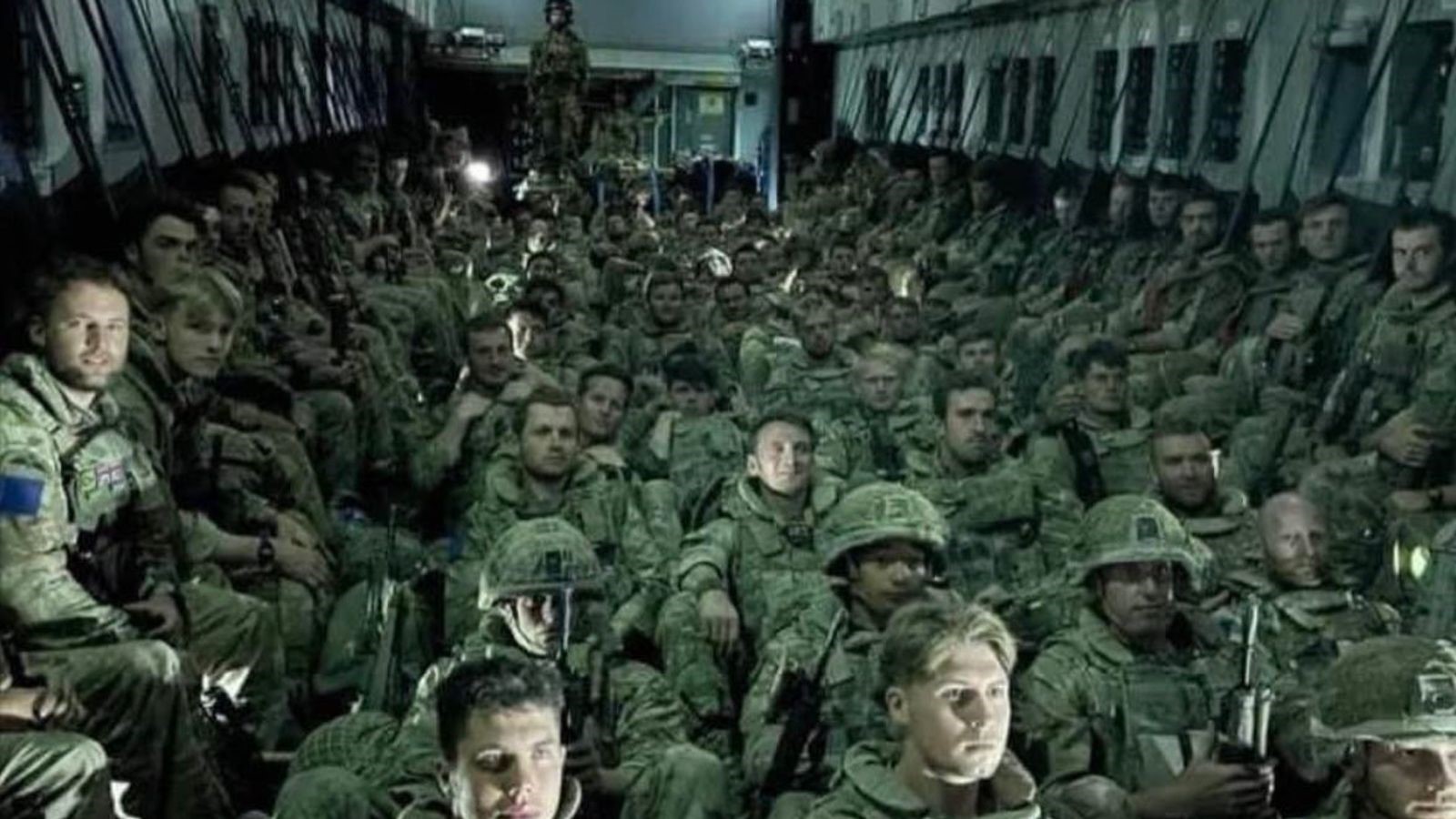 △英国从阿富汗撤离专机上的士兵们(图片来源:天空新闻)