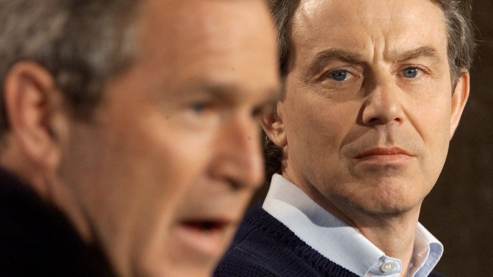 △时任英国首相布莱尔(右)与时任美国总统乔治·布什(左)(图片来源:天空新闻)