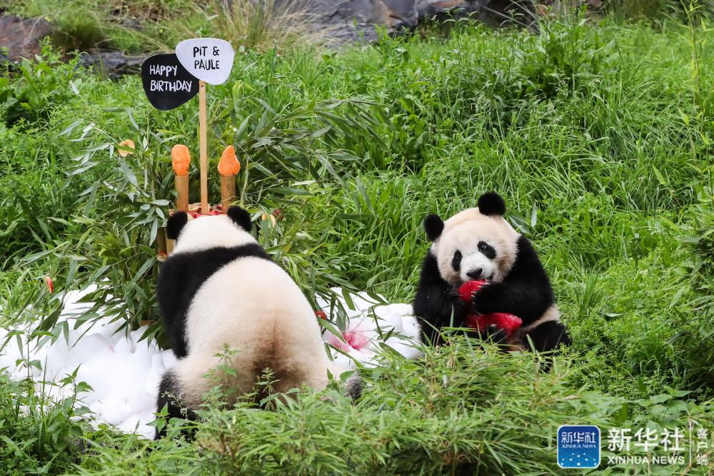 旅德大熊猫“梦梦”和“娇庆”的双胞胎幼崽“梦想”和“梦圆”8月31日迎来两周岁生日,柏林动物园为它们举办了庆祝活动。