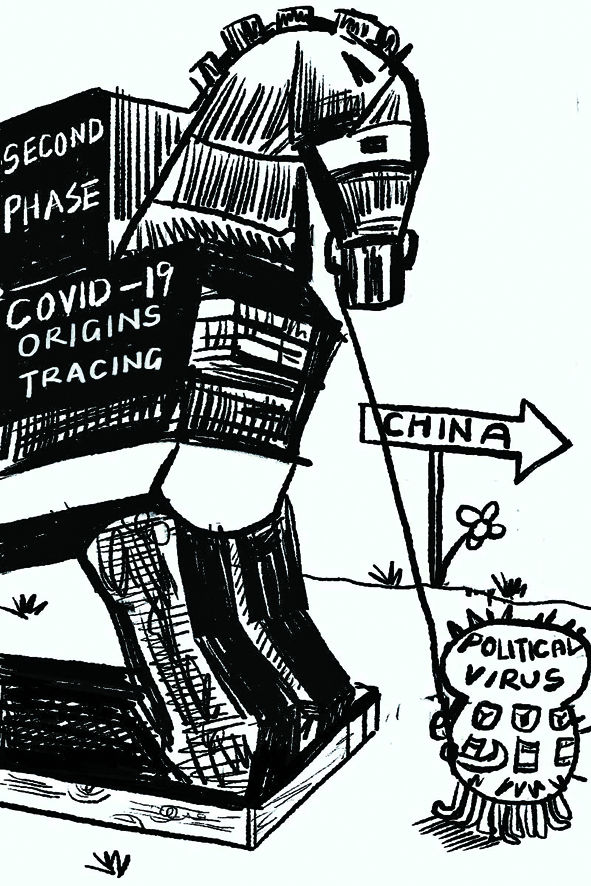 漫画《特洛伊木马》选用西方人非常熟悉的故事元素,让受众快速地了解漫画所传达的含义,所谓的病毒溯源只是美国将病毒政治化并以此攻击中国的借口。