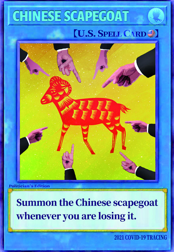除了政治讽刺漫画,画手们还大开脑洞,创作游戏主题海报,比如用俄罗斯方块图解美国抗疫不力的种种原因。令海外网友大呼过瘾的还有“游戏王”风格的卡牌:召唤“中国替罪羊”为抗疫失败找借口;召唤“双面人”发起抹黑攻击;召唤“谎言兽”回应质疑之声;召唤“愤怒的生化博士”统领美国遍布全球的生化实验室……