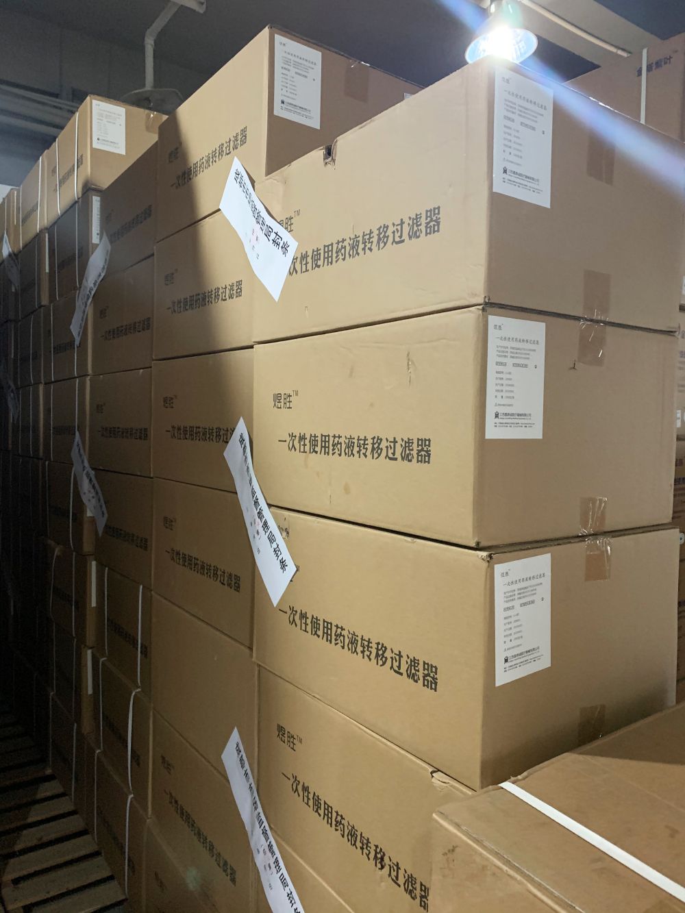 今年3月,成都市市场监管局接到举报线索,依法对销售商成都某医疗器械有限公司住所进行现场执法检查。执法人员在库房内发现了52000支涉案产品——煜胜牌一次性使用药液转移过滤器。经调查发现,该产品由江苏某医疗器械有限公司生产,包装上标注的专利为有效专利,专利权人正是该生产商。