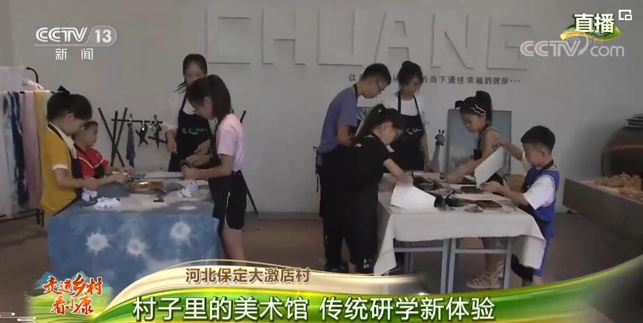 总台记者 杨海灵:走进大激店村的村口,就踏上了这座古村的历史文化之旅。沿着水清岸绿的百草沟河,一路向村子深处走了,可以看到有100多年的古戏楼,400多年的东明桥,第一次来到这个村子可以感受到村子古色古香的味道。而大激店村绝对不止一面,一座现代感十足的美术馆在竹林掩映下,颜值非常高。