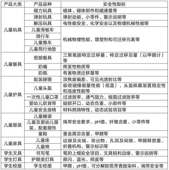 从115种儿童和学生用品中,科学选择23种重点产品,覆盖儿童学生吃、穿、住、用、行、学、玩等各方面产品质量安全需求;聚焦可能造成机械物理、化学危害的高风险产品质量安全指标,包括玩具小零件、服装绳带安全、密胺餐具三聚氰胺迁移量等安全性指标作为监管的重要指标;聚焦销售“三无”、无证(无生产许可证和未经CCC认证)、劣质儿童和学生用品等行为较多的小商品批发市场、城乡接合部集贸市场、学校周边商铺及电商平台为重点领域;选择连续出现监督抽查不合格、涉及处罚案件、投诉举报质量问题集中等情形的企业为重点企业。