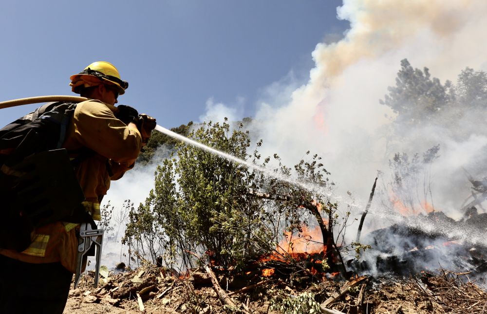 8月2日,消防员在美国加利福尼亚州河滨县应对快速蔓延的山火。美国加州南部多地遭遇高温,山火险情不断。(新华社发)