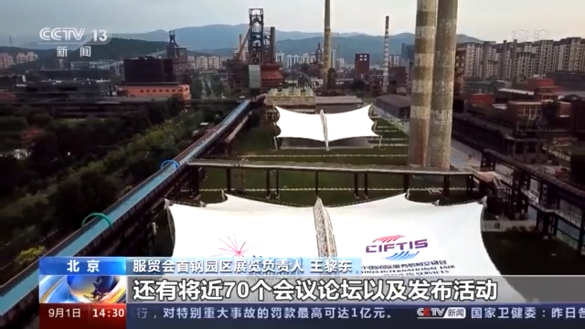 服贸会首钢园区展览负责人 王黎东:共有1210多家参展企业参展,仅在首钢一地,有将近70个会议论坛以及发布活动。整个展区的15个场馆围绕着首钢的工业遗存,你能够看到现代的展馆和历尽沧桑的这种传统的遗存融合在一起,形成一种特别特殊的人文景观。