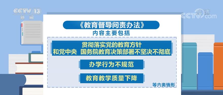 问责内容主要包括贯彻落实党的教育方针和党中央、国务院教育决策部署不坚决不彻底,办学行为不规范,教育教学质量下降等六类情形。