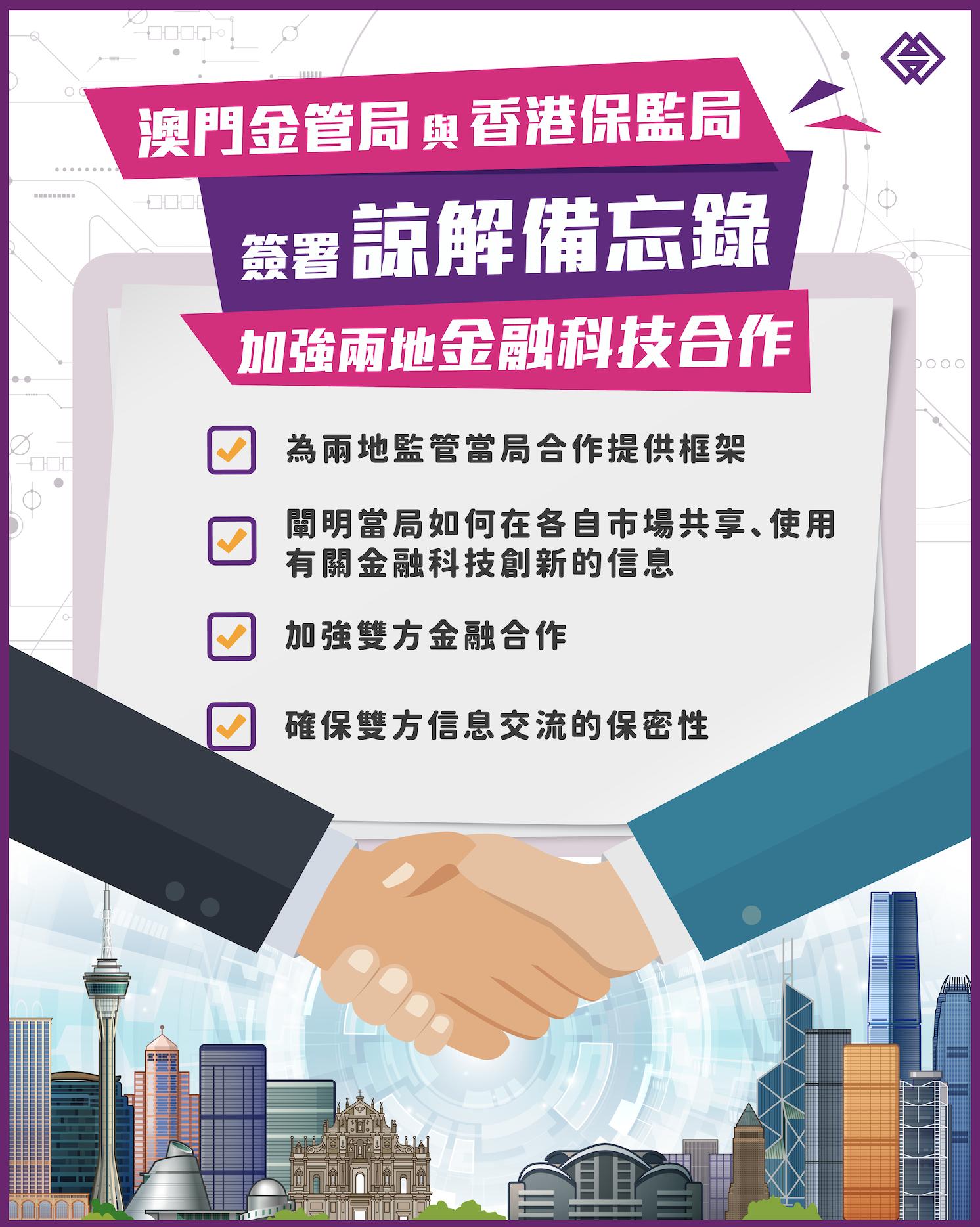 9月1日,澳门金融管理局与香港保险业监管局签订《金融科技合作谅解备忘录》,深化双方金融科技协作,促进金融创新服务。