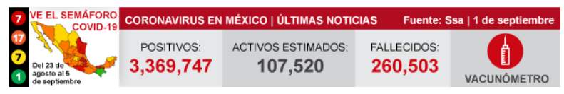 当地时间9月1日,墨西哥卫生部宣布,截至9月1日19时,墨西哥24小时新增新冠肺炎确诊病例17337例,累计确诊3369747例;新增死亡病例1177例,累计死亡260503例。(总台记者 盛嘉迪 吕兴林)