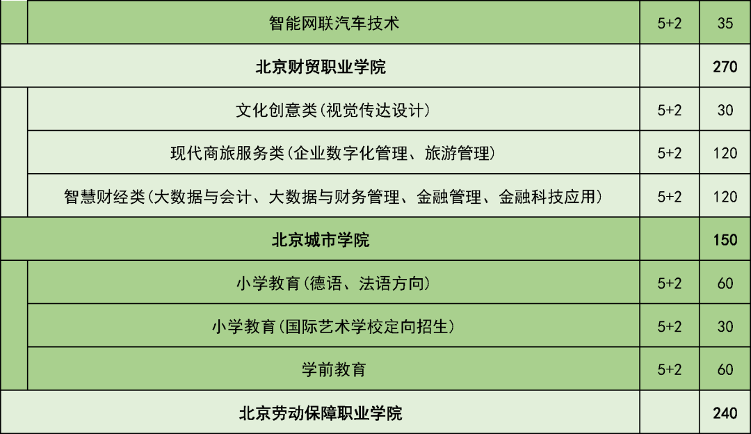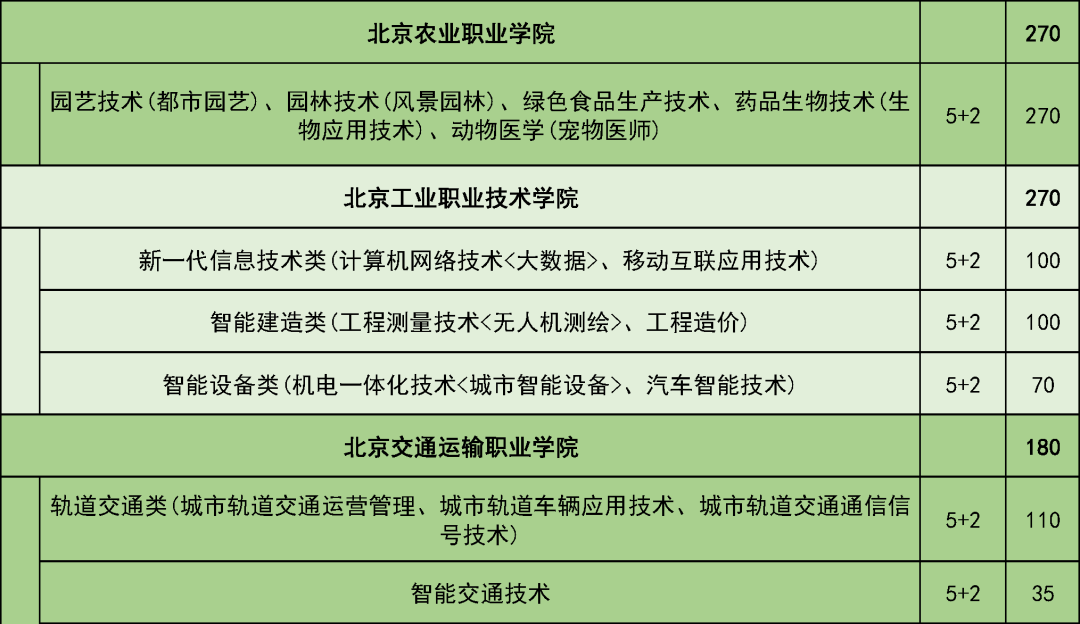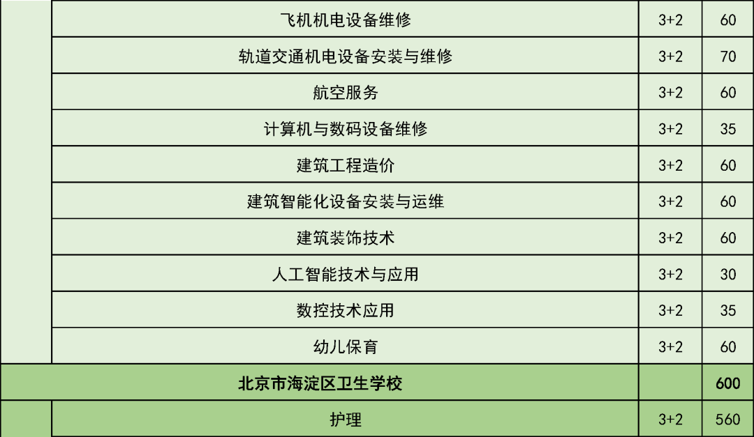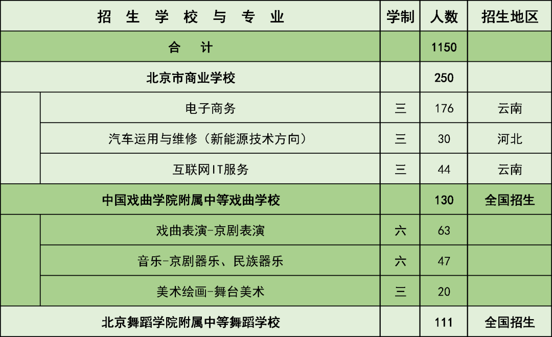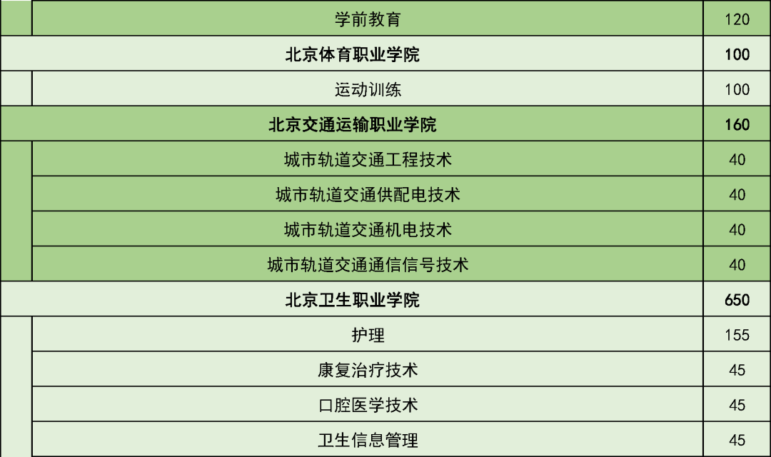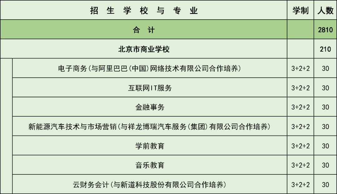 根据安排,今年北京市普通中等专业学校在京招生8474人、京外招生1150人;五年制高职试点学校共招1660人;高端技术技能人才贯通培养学校招生2810人。