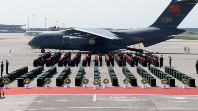 9月2日,第八批在韩志愿军烈士的遗骸回归祖国,迎回仪式在沈阳桃仙国际机场举行。