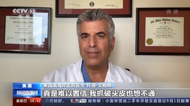 来自美国南海岸医院的传染病学专家托德·艾勒林医生在接受采访时表示,现在一些将疫情政治化的行为毫无道理,这是美国疫情失控的根本原因。
