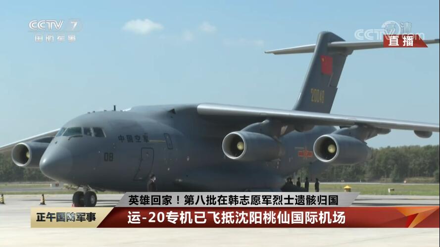 2020年9月27日,第七批,我国从韩国接回117位志愿军烈士的遗骸。第七批志愿军烈士遗骸由空军运输机运-20接运回国,这也是我国首次派遣国产运-20运输机执行此项任务。