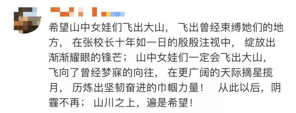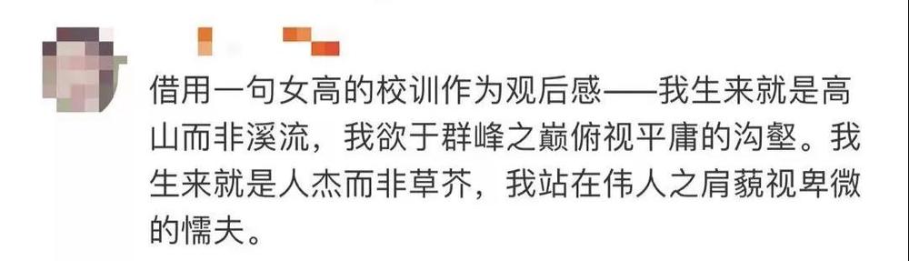 有网友在评论区和杨丽梅,以及华坪女高今年招收的其他158名高一新生一起,念出了女高人的入学誓词:“我生来就是高山而非溪流,我欲于群峰之巅俯视平庸的沟壑……”