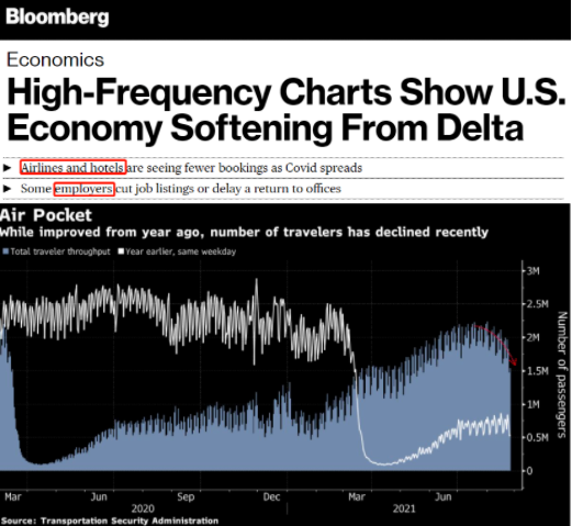 最新数据显示,德尔塔变异株对美国经济复苏产生了显著消极影响。由于消费者支出受到疫情抑制,企业推迟恢复正常运营,8月的美国经济依旧疲软。