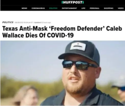 △美国《赫芬顿邮报》:得克萨斯州一名组织反口罩抗议的男子在感染新冠肺炎后去世,年仅30岁。