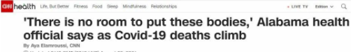 △美国有线电视新闻网(CNN):疫情重灾区阿拉巴马州首次使用冷藏车存放遗体。