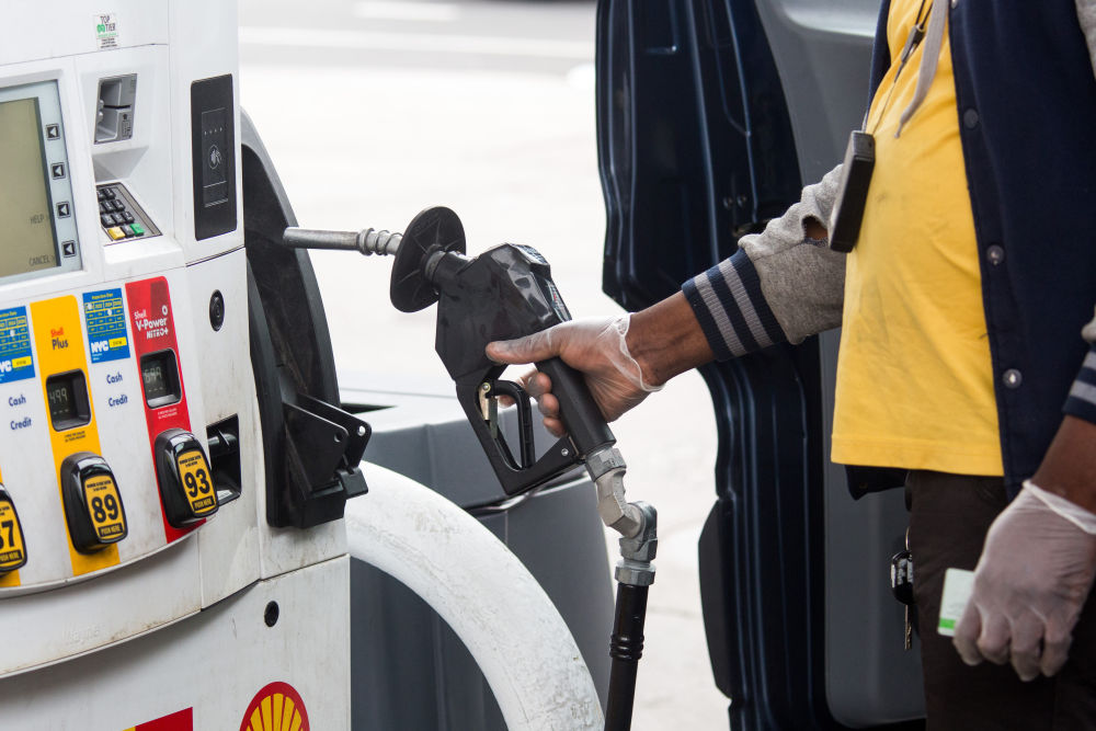 2020年4月9日,一名男子在美国纽约的一处加油站加油。(新华社发,郭克摄)