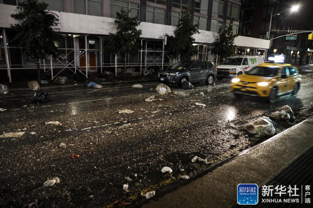 ↑9月2日,暴雨过后美国纽约一条道路上垃圾遍地。