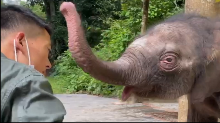 在“象爸爸”的悉心照料下,小象“文文”目前的状态已有所好转,“文文”每2到3个小时就要进食一次,单次喝奶量也从刚被救助时的100毫升增加到目前的1000毫升,并且在“象爸爸”的引导下,“文文”已经学会了通过吸管自己喝奶的技能,吃饱喝足的“文文”就来了精神,对着悉心照料它的“象爸爸”就是一顿撒娇玩耍求抱抱。戳视频,围观“小萌象”↓↓↓