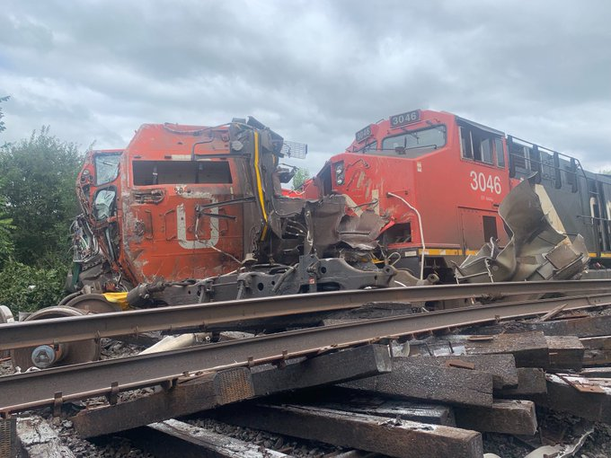 加拿大安大略省警方当地时间9月2日宣布,两列货运列车在该省东部的普雷斯科特(Prescott)发生相撞事故,有一人受轻伤。