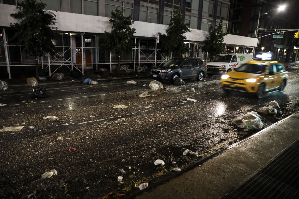 9月2日,暴雨过后美国纽约一条道路上垃圾遍地。(新华社记者王迎摄)