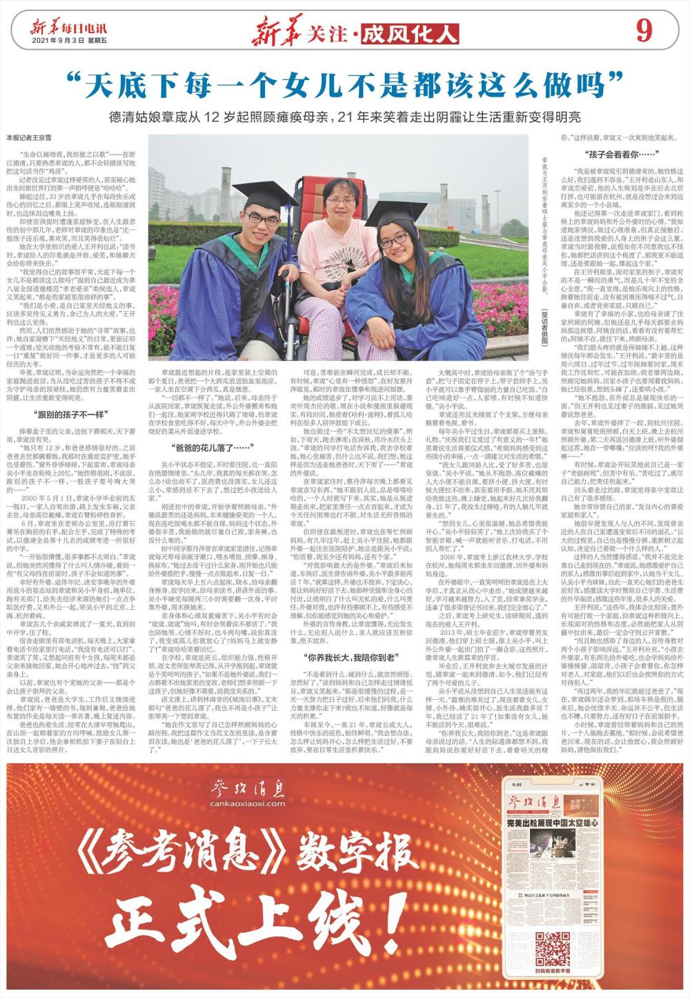 “我觉得自己的故事很平常,天底下每一个女儿不是都该这么做吗?”提到自己最近成为第八届全国道德模范“孝老爱亲”类候选人,章宬又笑起来,“都是些家庭里很琐碎的事”。