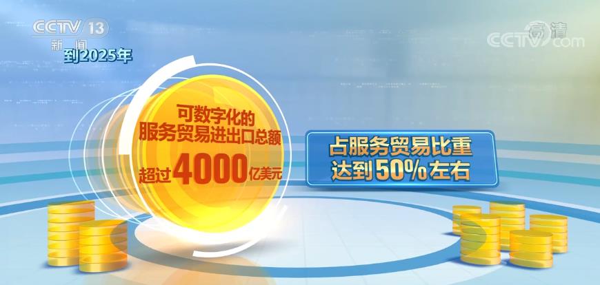 报告预计,“十四五”时期,我国数字贸易规模将持续扩大,到2025年,可数字化的服务贸易进出口总额超过4000亿美元,占服务贸易比重达到50%左右。