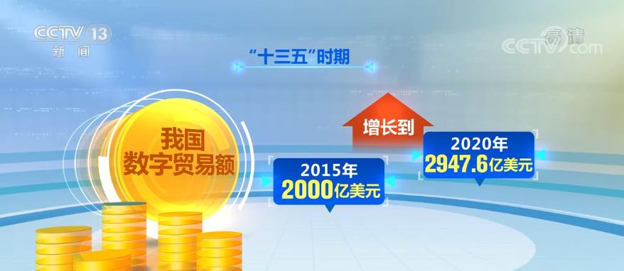 数据显示,“十三五”时期我国数字贸易额由2015年的2000亿美元增长到2020年的2947.6亿美元,增长47.4%,占服务贸易的比重从30.6%增长至44.5%。