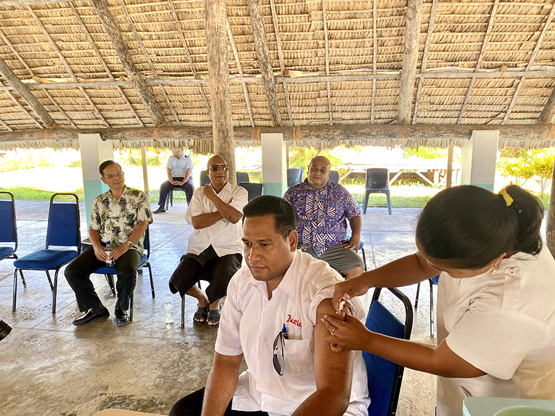当地时间9月3日,基里巴斯举行了中国援助新冠疫苗接种启动仪式,基里巴斯总统马茂和多位内阁部长、中国驻基里巴斯大使唐松根等近50人参加仪式。