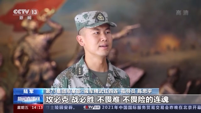 第73集团军某旅“强军精武红四连”指导员 陈思宇:作为一支红军连队,我们更是要发扬先辈“攻必克、战必胜,不畏难、不畏险”的连魂,更是要继承先烈遗志,以时不我待的紧迫感投身练兵备战,聚焦使命任务,提高新时代打赢能力。