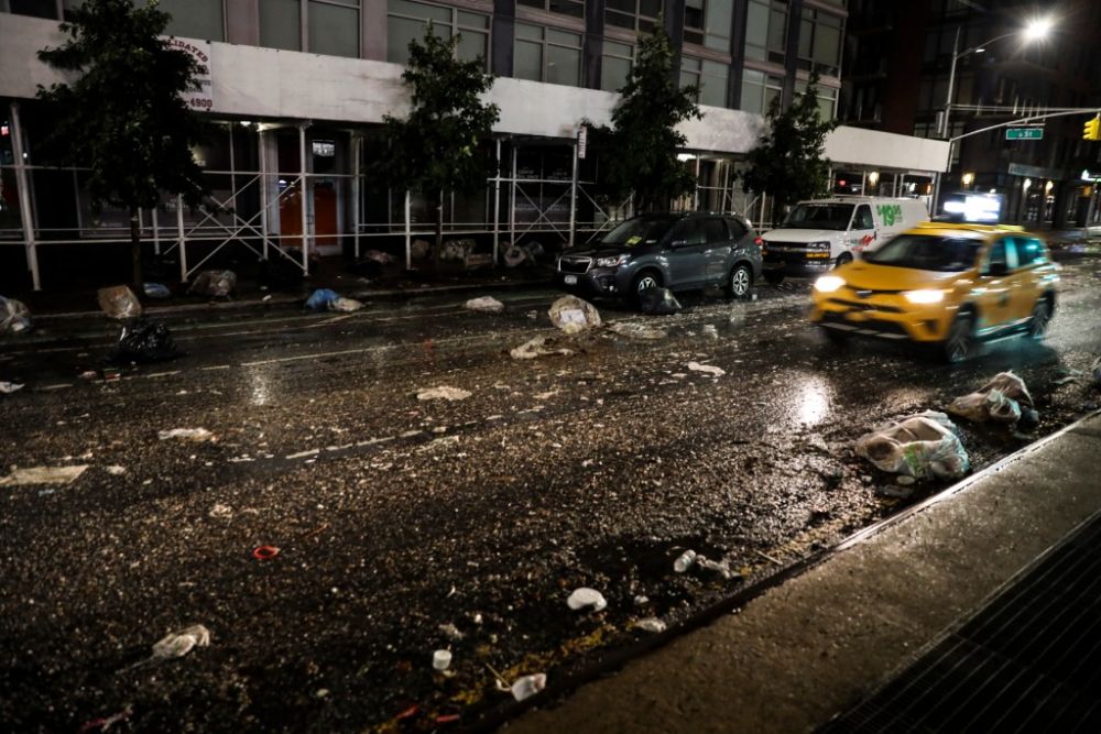 9月2日,暴雨过后美国纽约一条道路上垃圾遍地。(新华社记者王迎摄)