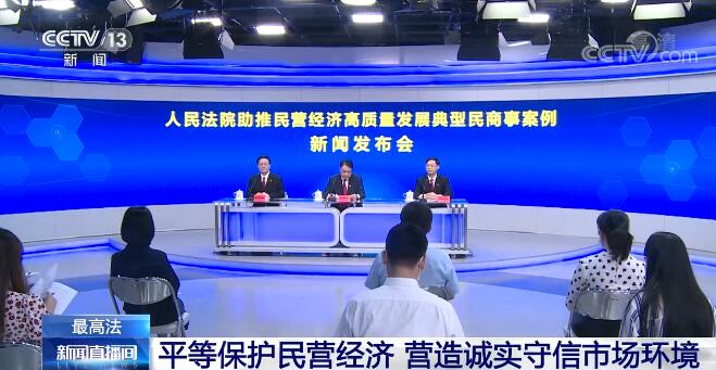央视网消息:最高人民法院今天(9月3日)召开新闻发布会,对外发布人民法院推进民营经济高质量发展典型案例,包括平等保护、善意文明执行、司法重整等方面共十件案例,要求在司法审判中坚持各类市场主体法律地位平等、权利保护平等、发展机会平等,切实维护好、实现好民营企业的合法权益。