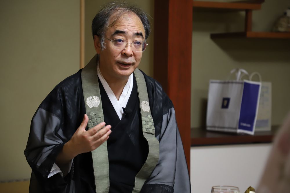 8月20日,日本爱知县圆光寺住持大东仁在寺内接受记者采访。新华社记者钞文摄