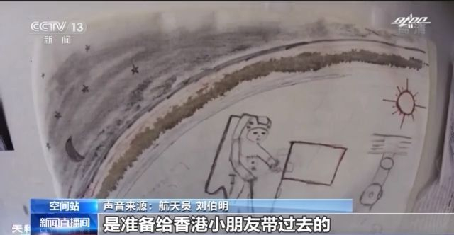 航天员 刘伯明:因为我们乘组每一名航天员都携带了一张全家福,这是我两次出舱之后创作的一幅小作品,也是我出舱后的感受,是准备给香港小朋友带过去的。