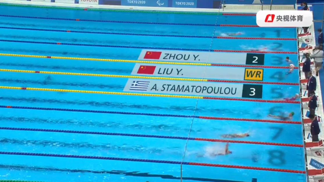 女子100米自由泳S11级决赛,李桂芝以1分05秒87打破残奥会纪录夺得冠军!队友蔡丽雯获得铜牌。