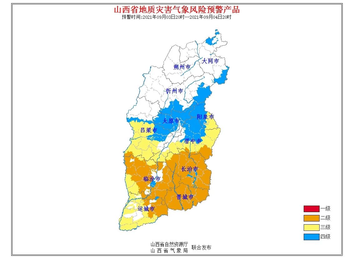 山西省自然资源厅、山西省气象局联合发布2021年9月3日20时至4日20时地质灾害预警:
