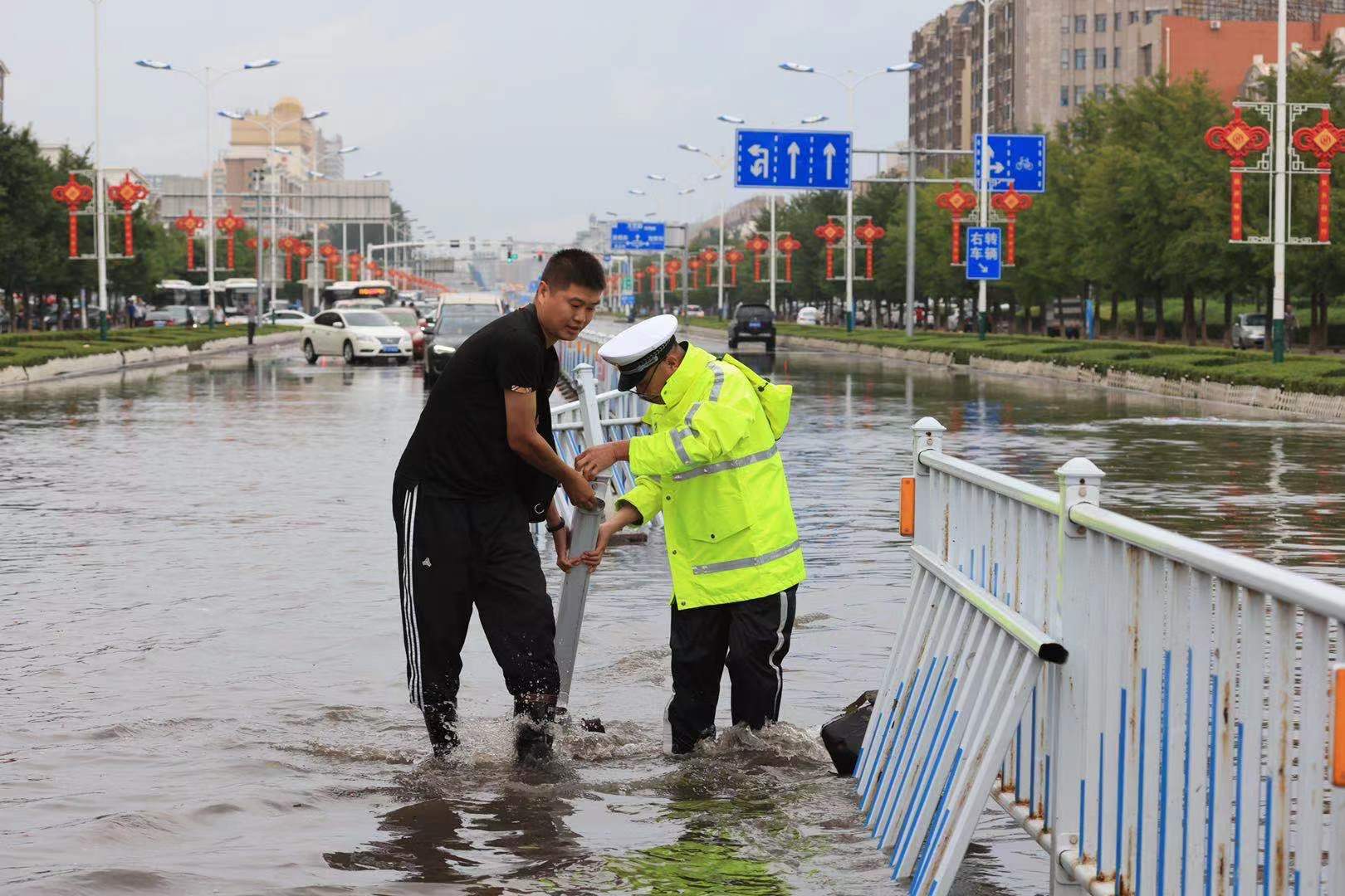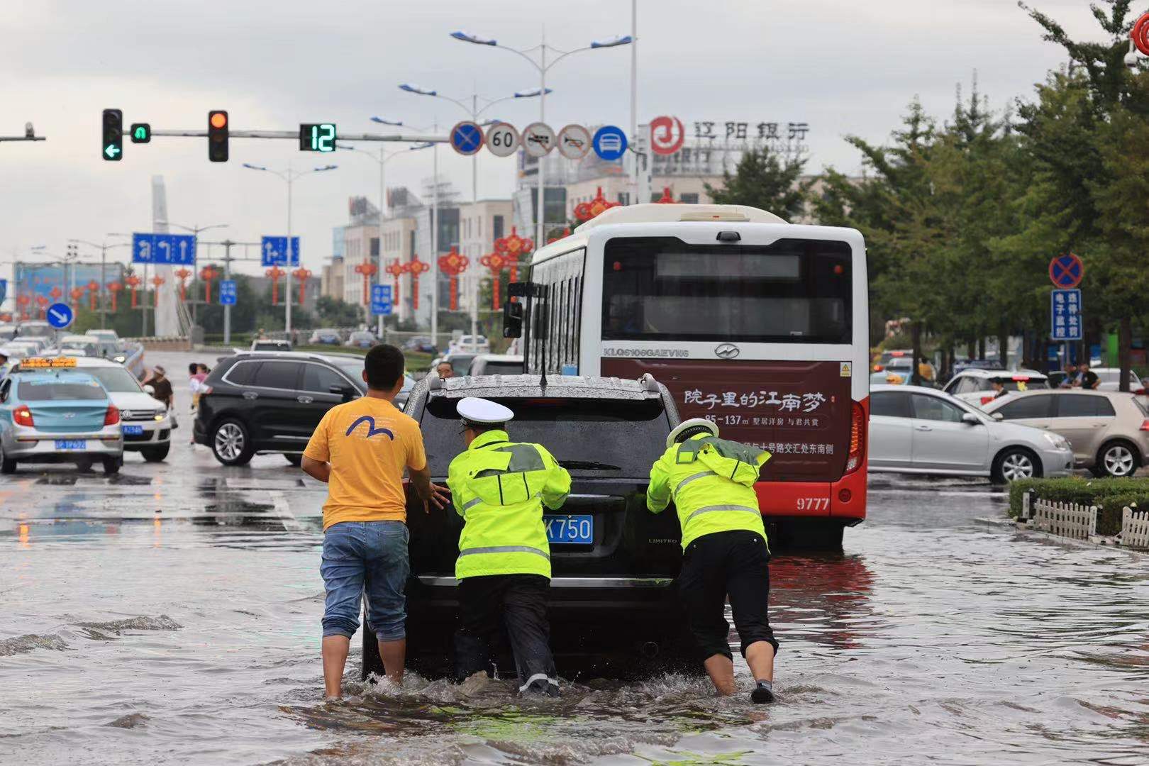 受到强降雨影响,绥中县城区积水严重,城区交通受影响,有车辆在水中抛锚。葫芦岛市交警部门紧急疏导交通,确保晚高峰畅通。