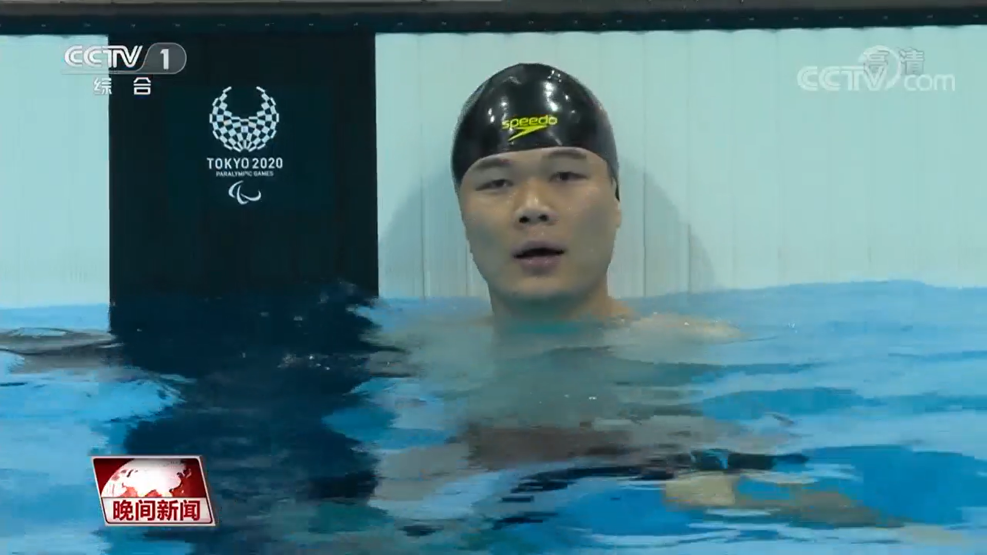 东京残奥会中国体育代表团游泳运动员郑涛:“我没手肢残,一天的(训练)计划跟有手的比,差不多一堂课游三个小时,一堂课差不多7000多(米),一天加起来是一万多(米)上万(米)的(训练)计划。”