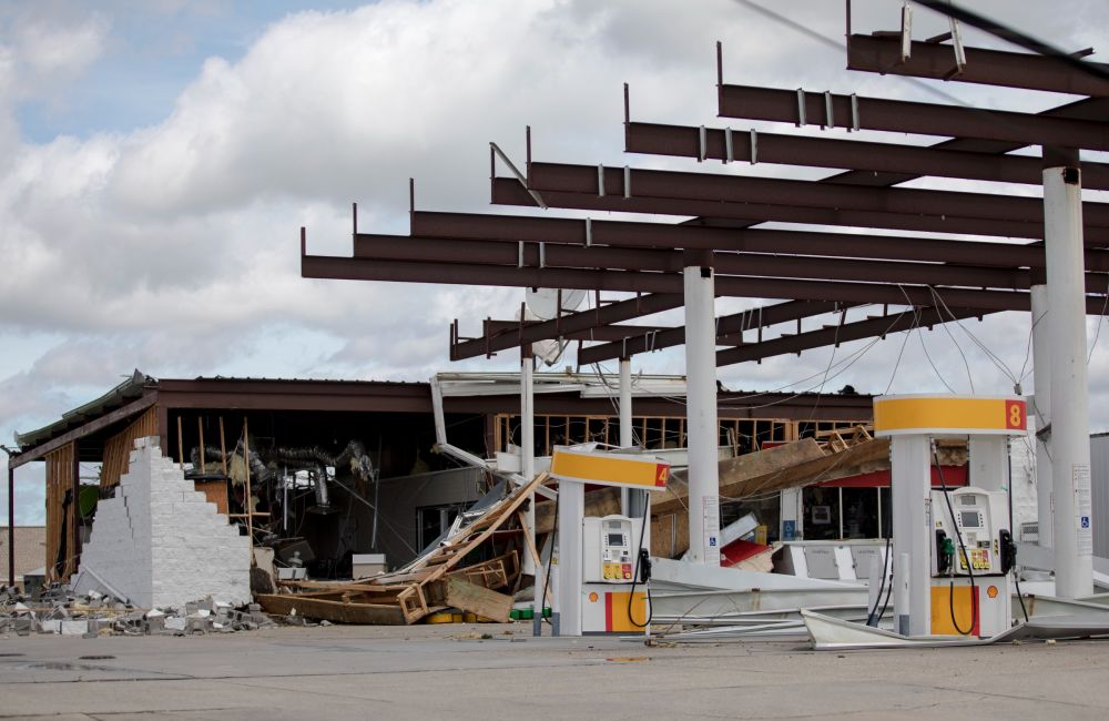 8月30日,在美国路易斯安那州霍马,一座加油站被飓风“艾达”毁坏。(新华社发,尼克·瓦格纳摄)