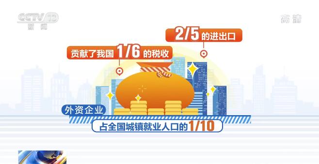 在中国投资兴业的同时,外资也成为了中国经济社会发展的重要参与者,在生产、分配、流通、消费各环节发挥了积极作用。外资企业以占市场主体2%的比重带动了约4000万人的就业,占全国城镇就业人口的十分之一,贡献了我国六分之一的税收、五分之二的进出口。