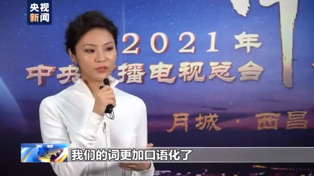 2021年中央广播电视总台中秋晚会主持人 孟盛楠:我们的词更加口语化了,讲述甚至是讲故事,甚至是聊天。我们会有行走的主持,边走边说边聊,跟大家讲一讲日新月异的变化。