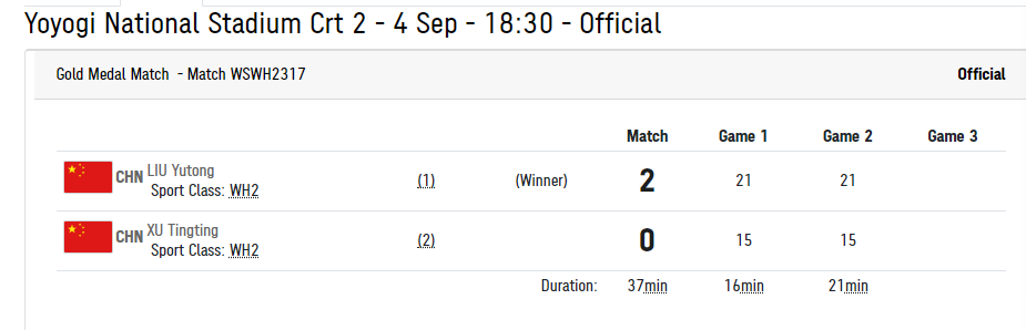 包揽金银!刘禹彤、徐婷婷获得残奥会羽毛球女子单打WH2级冠亚军