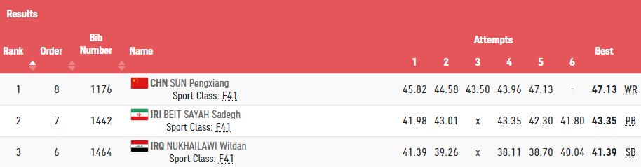 孙鹏祥夺得东京残奥会男子标枪F41级金牌